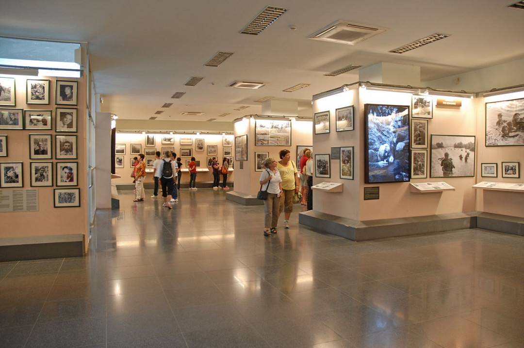Вьетнамская война, жертвами которой стало более 880 000 жителей Вьетнама, началась в 1957 году и завершилась в 1975 году обретением независимости. События тяжёлых 18 лет войны представлены в экспонатах Музея жертв войны. Экспозиция размещается в 6 залах 3-этажного здания и состоит из 8 тематических отделов. На первом этаже собраны документы и фото, рассказывающие о военных преступлениях США против народа Вьетнама. Второй и третий этаж посвящены потерям вьетнамской и американской стороны, в том числе жертвам «агента оранж». На открытых площадках выставлена американская военная техника, придуманные французами «колючие клетки тигров», где содержали вьетнамских узников, боеприпасы, которые американцы использовали против мирного вьетнамского населения — шариковые и игольчатые бомбы, экспериментальные снаряды, мины «лепесток», срабатывающие от нажима.