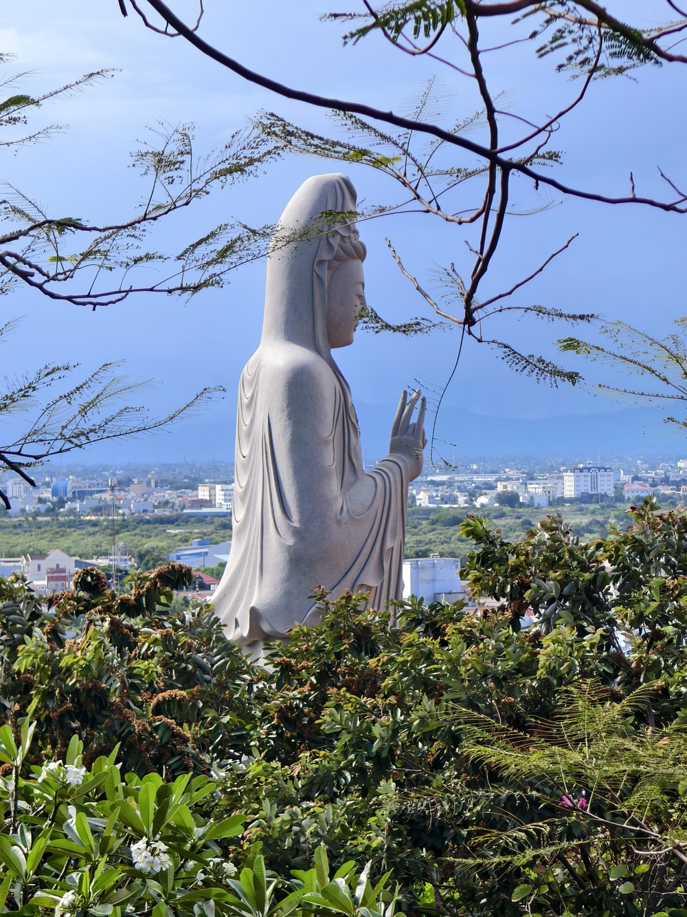 Первым делом вы отправитесь к одному из самых почитаемых мест среди буддистов Вьетнама — горе Таку. Подниметесь на фуникулере на высоту около 500 метров, пройдете через старый буддийский монастырь и окажетесь у крупнейшей статуи лежащего Будды во Вьетнаме длиной 49 метров. По пути вы оцените панорамные виды на джунгли с канатной дороги, услышите легенду о монахе-целителе, а также узнаете о распространении буддизма в стране, его основных школах и базовом учении Сиддхартхи Гаутамы — Четырех благородных истинах.