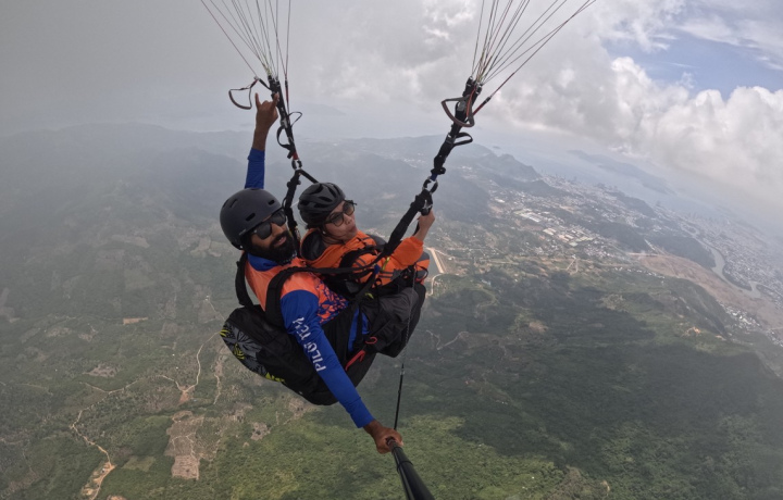 Это захватывающее воздушное путешествие над Нячангом и побережьем. Вы подниметесь в небо над морем, пляжами или рисовыми полями — маршрут выберете сами. Полёт не требует подготовки — всё под контролем инструктора. Парамотор легко набирает высоту и позволяет летать над заливом на высоте до 500 метров.