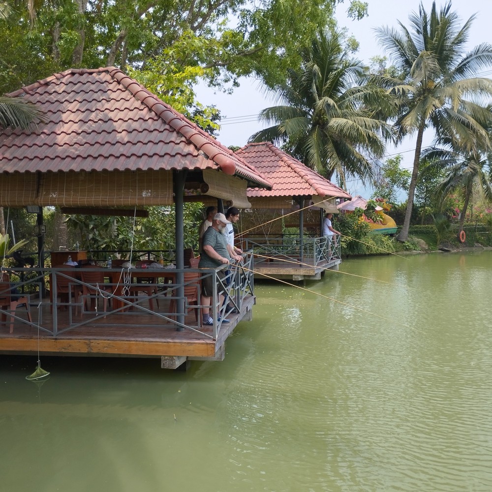 Дорога к озеру проходит через манговые сады и плантации. Вы увидите жизнь вне туристических кварталов: лениво пасущихся буйволов, цапель и деревенские рынки. Мы расположимся в бамбуковых беседках на сваях прямо над водой — это позволит ловить рыбу, буквально не вставая из-за стола.
