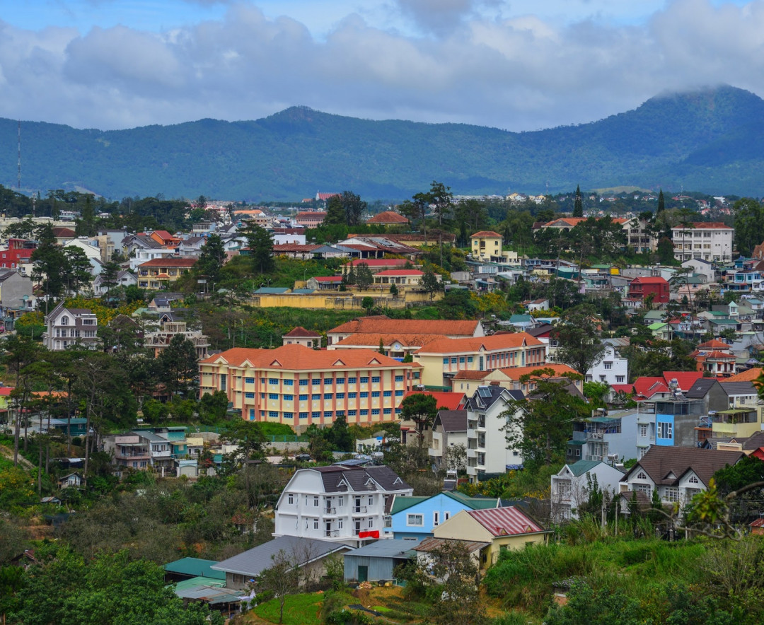 Город Далат раскинулся на плато Лангбанг в 214 км от Нячанга на высоте 1475 м. Сухой мягкий климат, среднегодовая температура около 24°C, сосновые леса, виноградники, кофейные плантации и великолепные пейзажи делают его одним из самых привлекательных горных курортов страны. Место для строительства в 1893 году предложил французский учёный-микробиолог Александр Йерсен. И он не ошибся. Уже в начале XX века Далат стал любимым местом отдыха французских чиновников и вьетнамской знати. Влияние европейское культуры воплотилось в местной архитектуре. Центральные улицы больше напоминают швейцарский провинциальный городок. В Далате даже есть своя Эйфелева башня — телевышка, стилизованная под символ французской столицы.