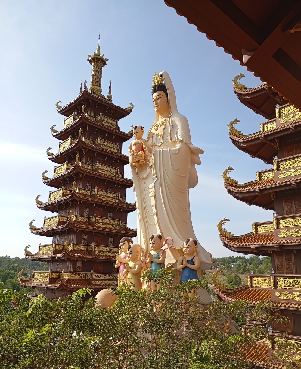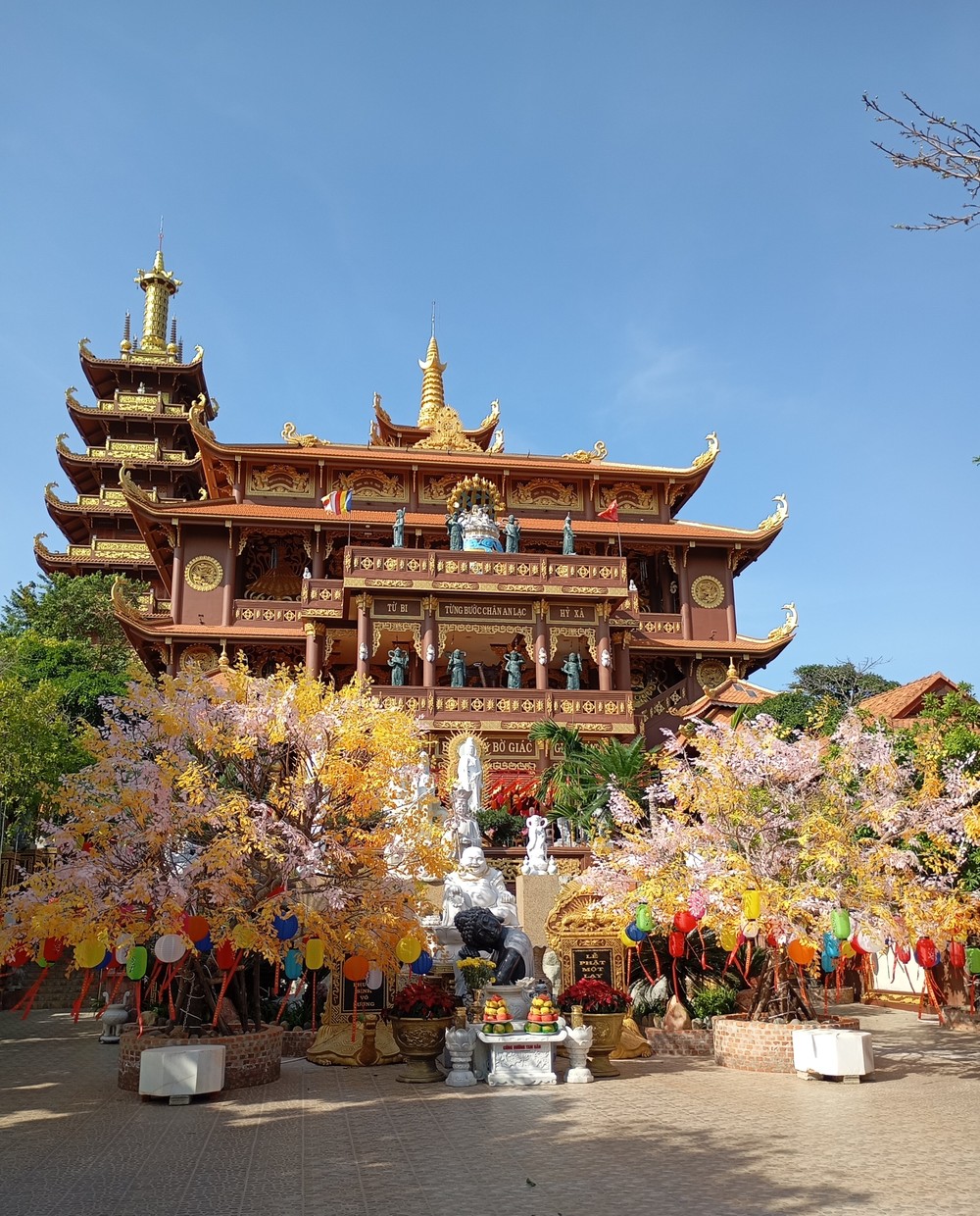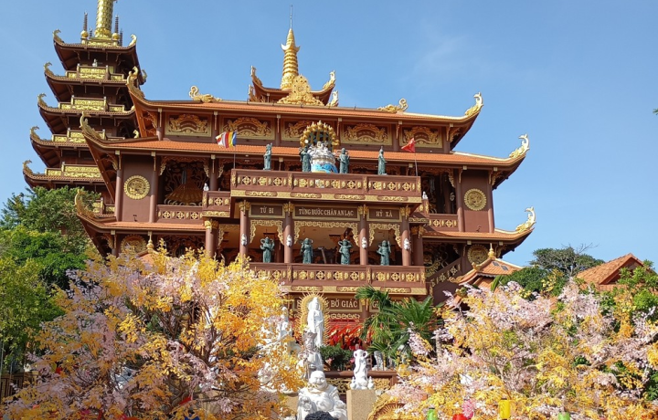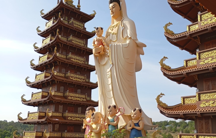 Chùa Thiện Quang (40 мин) — действующая буддийская пагода. Гигантские статуи Будды, монахи и атмосфера спокойствия.