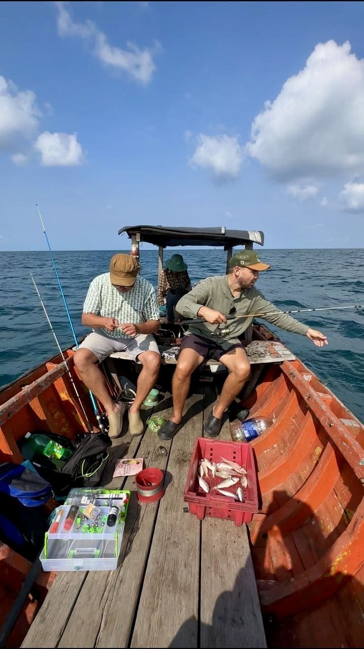 На нашей морской рыбалке вас ждёт подлинная атмосфера: вас встретит опытный вьетнамский дедушка, который рыбачит на этих водах уже многие десятилетия. Мы выйдем с вами в открытое море и будем рыбачить в особых местах, которые прекрасно знает дедушка: мы бросим якорь и насладимся рыбалкой в проверенных локациях. Вы увидите, как дедушка мастерски управляется с лодкой и поделится с вами своими секретами рыбалки. Путешествие подарит вам красоту вьетнамских пейзажей, а при удаче мы также проверим старые ловушки деда, чтобы увидеть, какой улов нас ждёт. И, конечно же, с вами буду я, сопровождая вас на протяжении всей рыбалки.